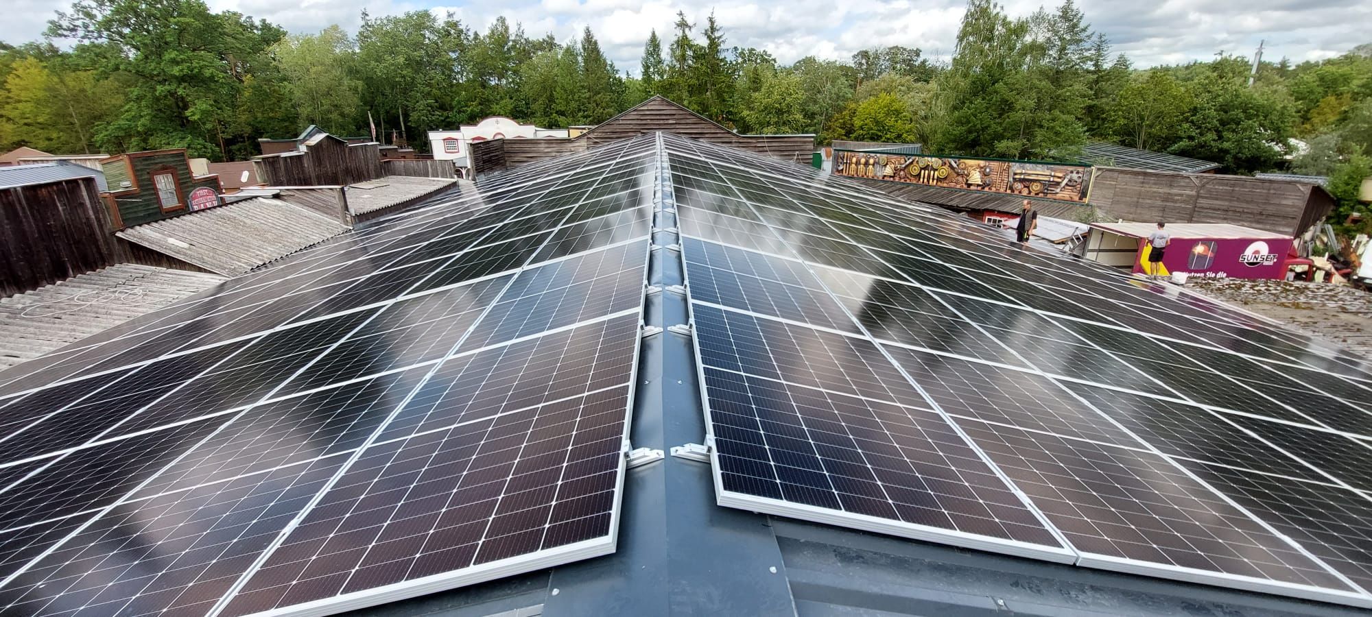 Die Westernstadt ist ein zentraler Bereich im Erlebnispark Schloss Thurn, frequentiert von Tausenden Gästen pro Jahr. Um den wachsenden Energiebedarf für Attraktionen, Beleuchtung und Gastronomie nachhaltig zu decken, hat der Park gemeinsam mit SUNSET eine großflächige PV-Anlage realisiert. Die Dachflächen eigneten sich ideal für eine modulare Anlage, die sowohl leistungsstark als auch wartungsfreundlich ist.