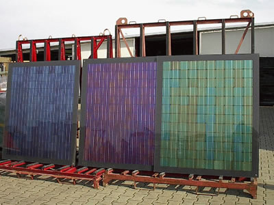 the solar radiation produces a direct voltage in the solar generators, which is collected by the electrodes. The solar cell therefore produces electrical energy directly from sunlight. The direct voltage generated in this way is converted into the normal 230-volt mains voltage in the inverter and fed directly into the existing domestic power supply or the public power grid.